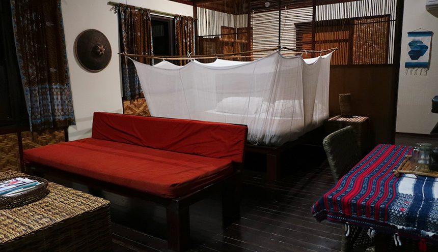 Cottage 4 has been built to cater to a family of four. The front room is air-conditioned, with a king-size bed which can also convert to twin beds. There is a separate fan room which has two bunk beds for the kids. The bathroom has a shower with hot and cold running water, hand basin and flush toilet.