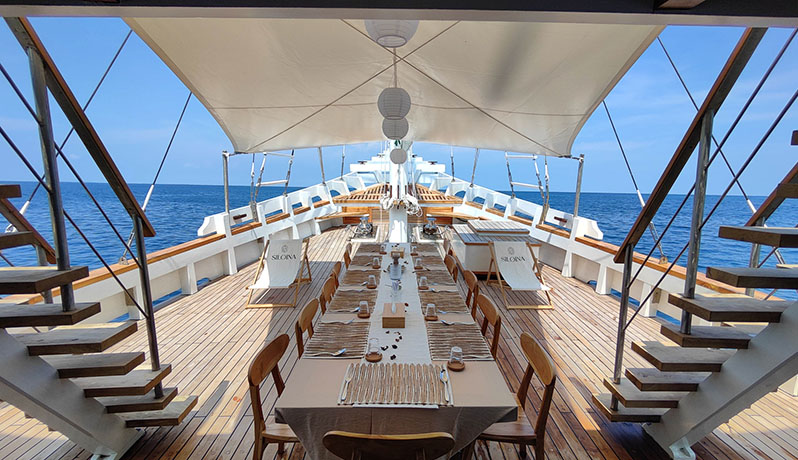 There’s actually 2 charter: Siloina 1 & Siloina 2 – both identical teak wood schooners and both built in 2023! These charters are designed to give that next level experience priding themselves with their service and luxury charters.
